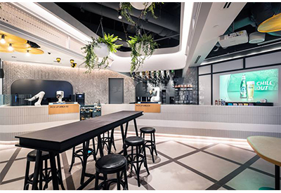 An aromatic cup of coffee or a well-balanced cocktail: Ratio, a Ross Digital company in Singapore, wants to revolutionize beverage service. To this end, the robotic café with lounge relies on KUKA robots. They serve drinks personalized on request. Two KUKA barista robots also prepare the Kopi-O, a highly caffeinated black coffee popular in Singapore.