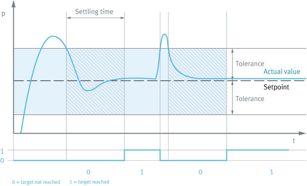 Users set performance parameters per channel and the valves provide closed-loop controls to those presets. Valves deliver highly dynamic response and precise pressure control to achieve “target reached” status for each channel, similar to the “motion complete” function in electric drive technology. Based on feedback from the valve’s temperature and pressure sensor, the embedded control algorithm automatically maintains the target position.