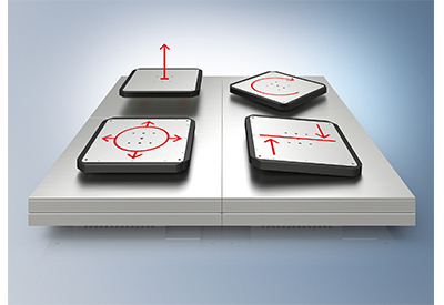 The basis of the XPlanar system is the planar tiles, which measure 240 x 240 mm and can be arranged in any desired geometries that are precisely adapted to the application at hand. The tiles contain all power electronics and support Gigabit communication via EtherCAT G. A freely selectable number of planar movers float above them, made possible by integrated permanent magnets. The movers can be used not only horizontally, but also vertically and even upside down. There is a choice of four different planar mover types: